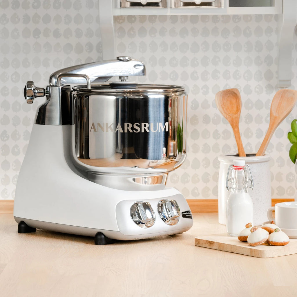 En tidløs klassiker - Ankarsrum Mineral White kjøkkenmaskin gir et naturlig og lys uttrykk, med en maskin som bak fasaden har den solide kraften og presisjonen du forventer av Ankarsrum.