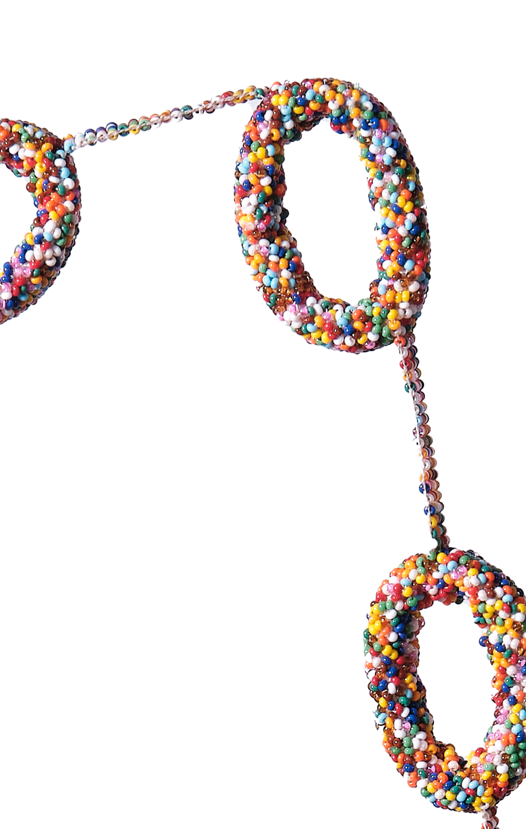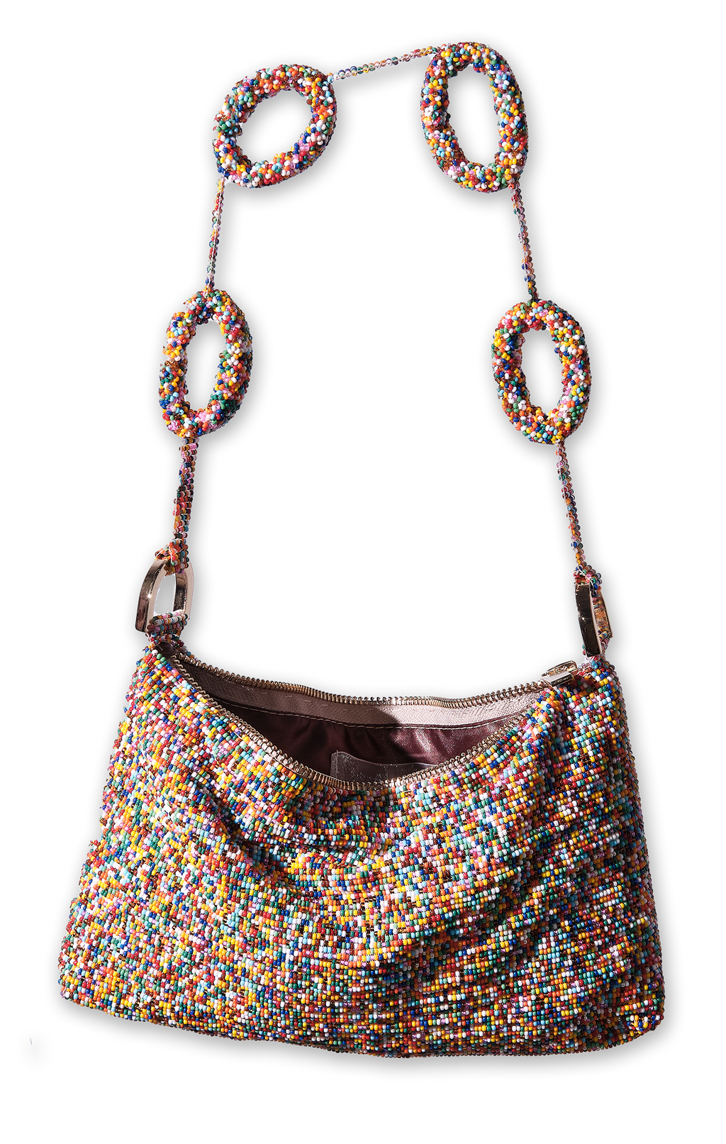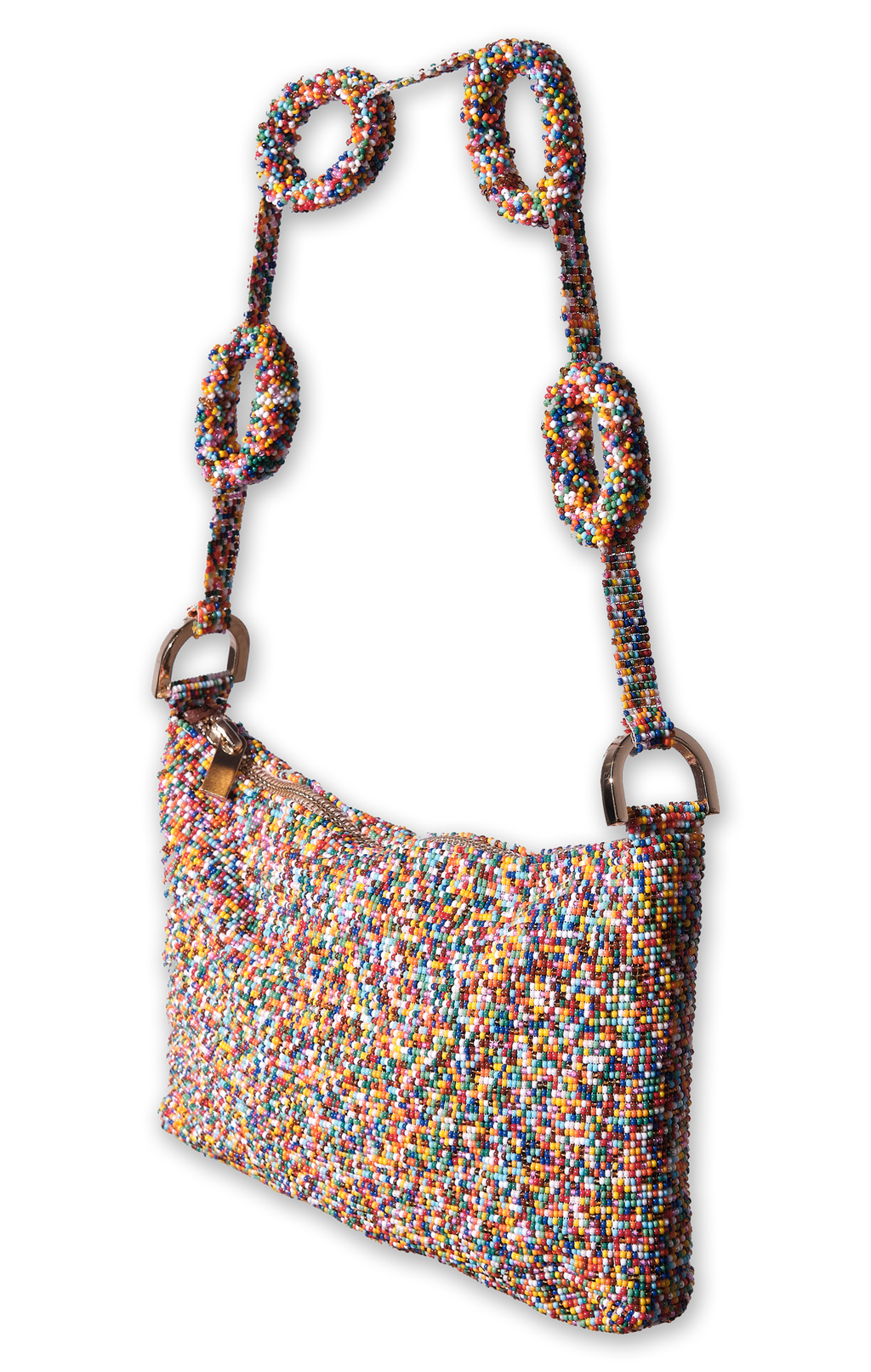 En 100 % hÄndlaget Chaquira-perleveske laget av hÄndverkere i Guatemala. Hver veske er et lite kunstverk som kombinerer tradisjonelt hÄndverk med moderne eleganse. Den er laget med omtrent 60 000 smÄ glassperler av hÞy kvalitet og tar nesten én uke Ä produsere for hÄnd.