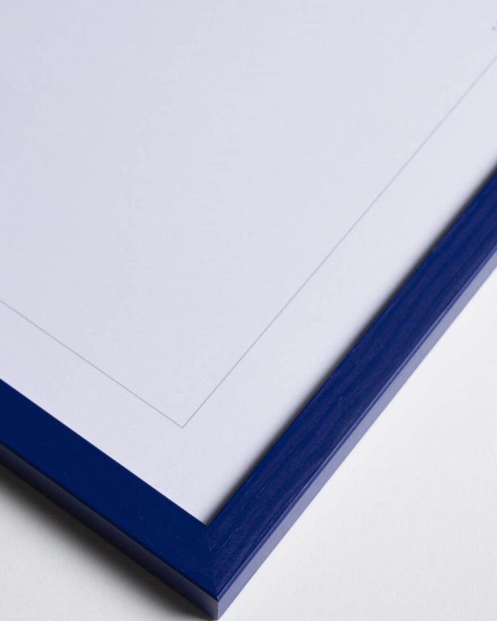 Elegant blå bilderamme fra Poster & Frame, laget med fokus på kvalitet og design. Produsert inhouse hos Poster & Frame, noe som sikrer jevn kvalitet, presisjon og holdbarhet i hvert enkelt produkt. Perfekt for å løfte uttrykket i både kunst og interiør.
