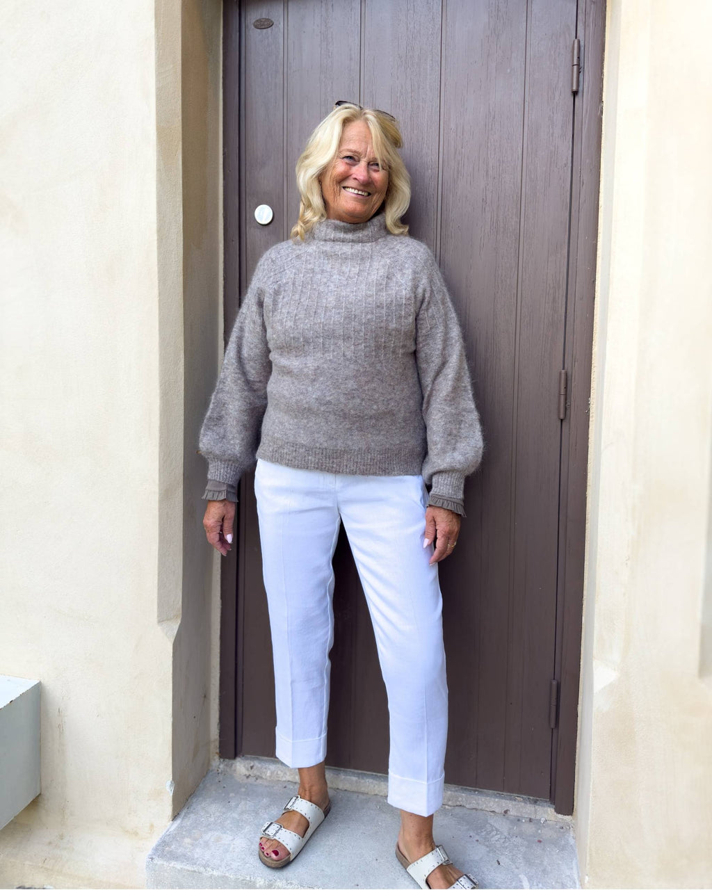 Lea er en klassiker strikket i myk mohair med dobbel crewneck og struktur i bærestykket. Genseren har vide ermer med lett ballongeffekt og er håndlaget i Nepal. Kjennetegnes av et lite hjerte i nakken.