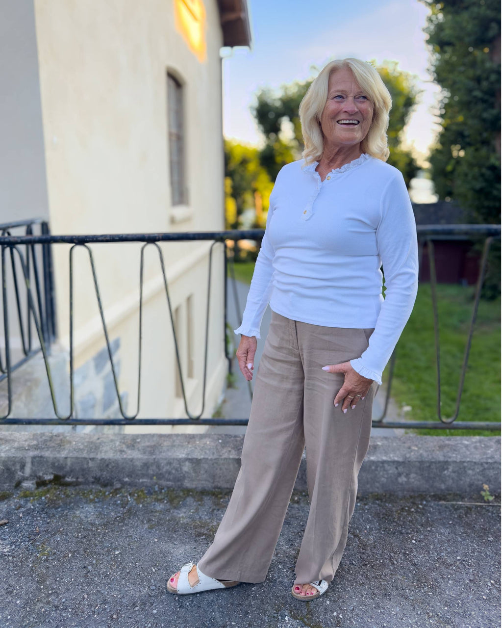 - Materiale: 65% Lin, 34% bomull, 1% elastan