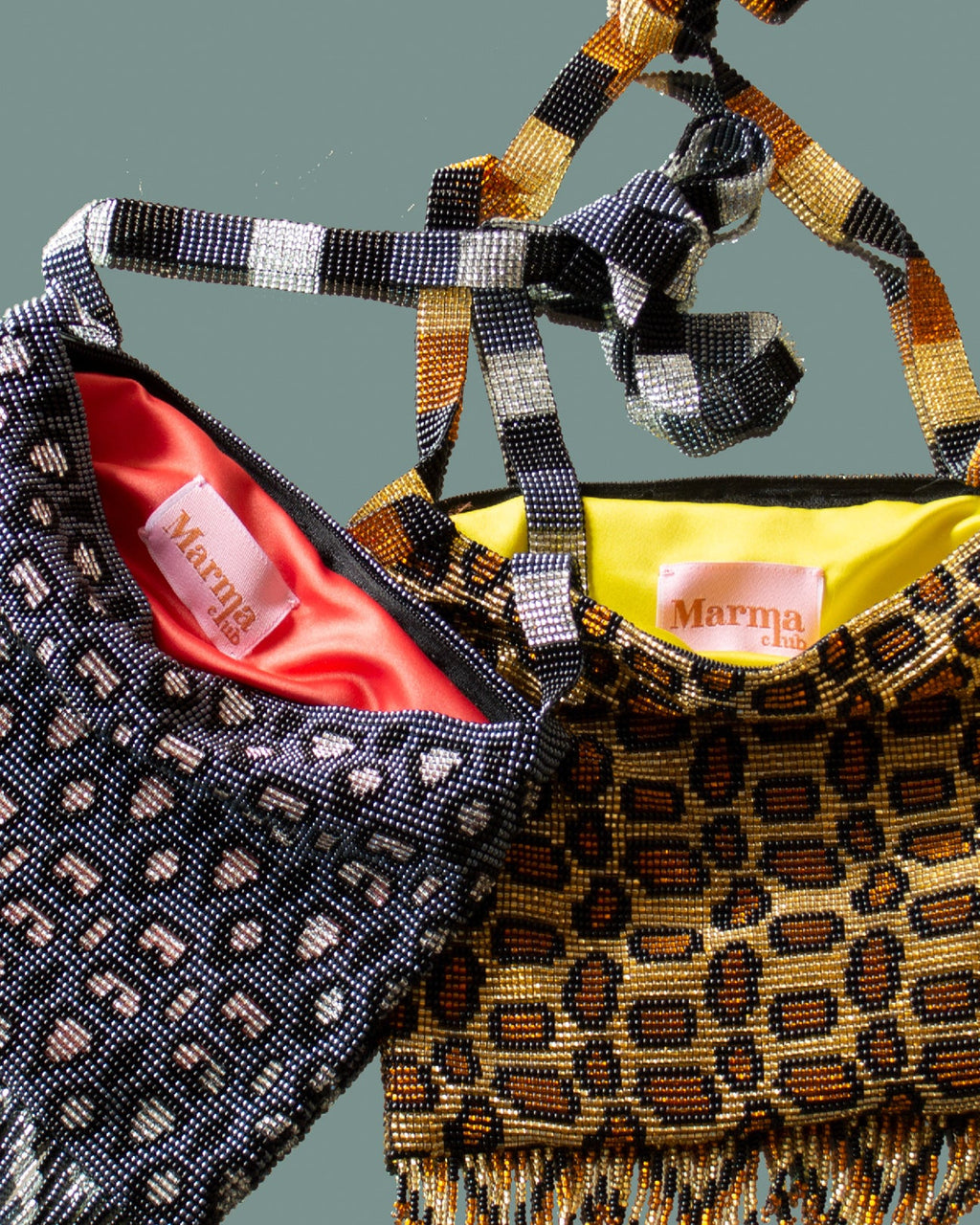 Vesken er laget av vakre glassperler og foret med fargerikt stoff for å sikre kvalitet, styrke og holdbarhet. Hver veske er unik og bærer med seg historien til håndverkeren som har laget den.