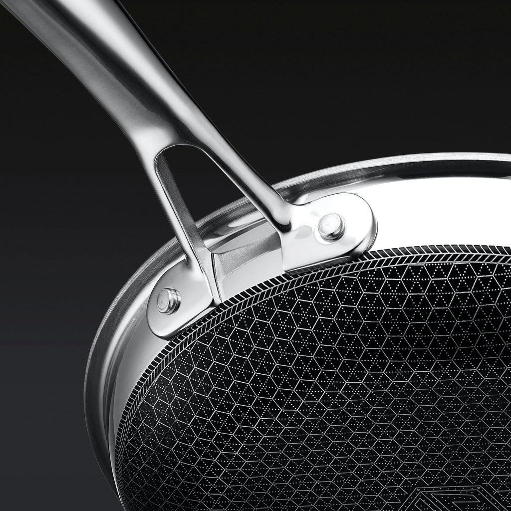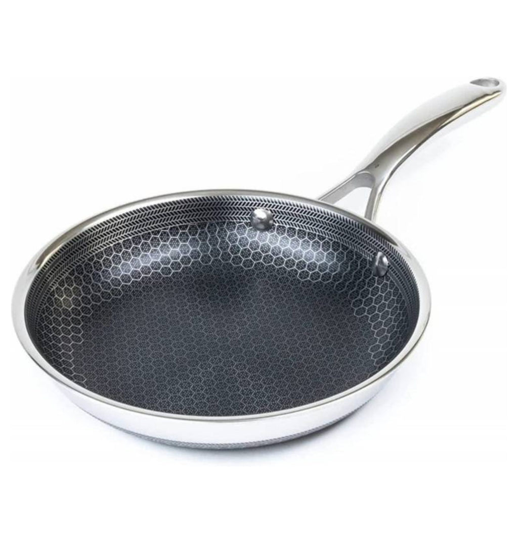 Med Hexclad kan du tilberede alt fra den mest delikate fisken til en saftig og perfekt brunet biff uten å bekymre deg for hvilken stekepanne du skal benytte, og produktene er PFOA-frie. Siden du har fordelen av en vanlig non-stick stekepanne og en stålpanne, trenger du kun bruke et minimum av stekefett samtidig som du kan bruke metallredskaper rett i stekepannen.