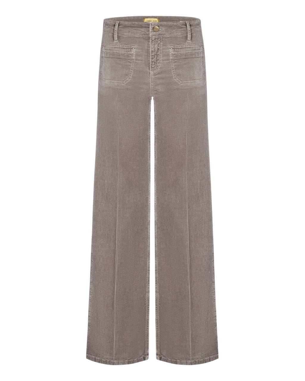 Tess Modal Cord er en klassisk og tidløs jeans fra Cambio. I cordfløyel med vide ben i full benlengde. Beltehemper. Små firkantede passepoilerte lommer foran og gullemblem på høyre baklomme.