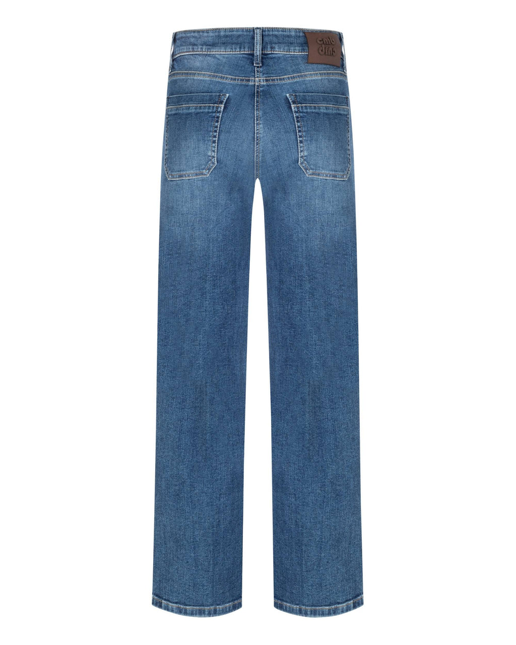 Tess Pocket er en klassisk, komfortabel og tidløs jeans fra Cambio. Stretch med vide ben i full benlengde. Små firkantede passepoilerte lommer foran og emblem på høyre baklomme.