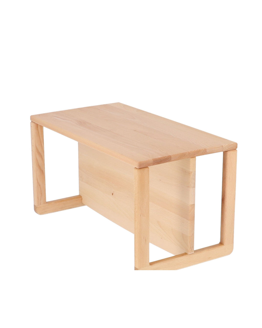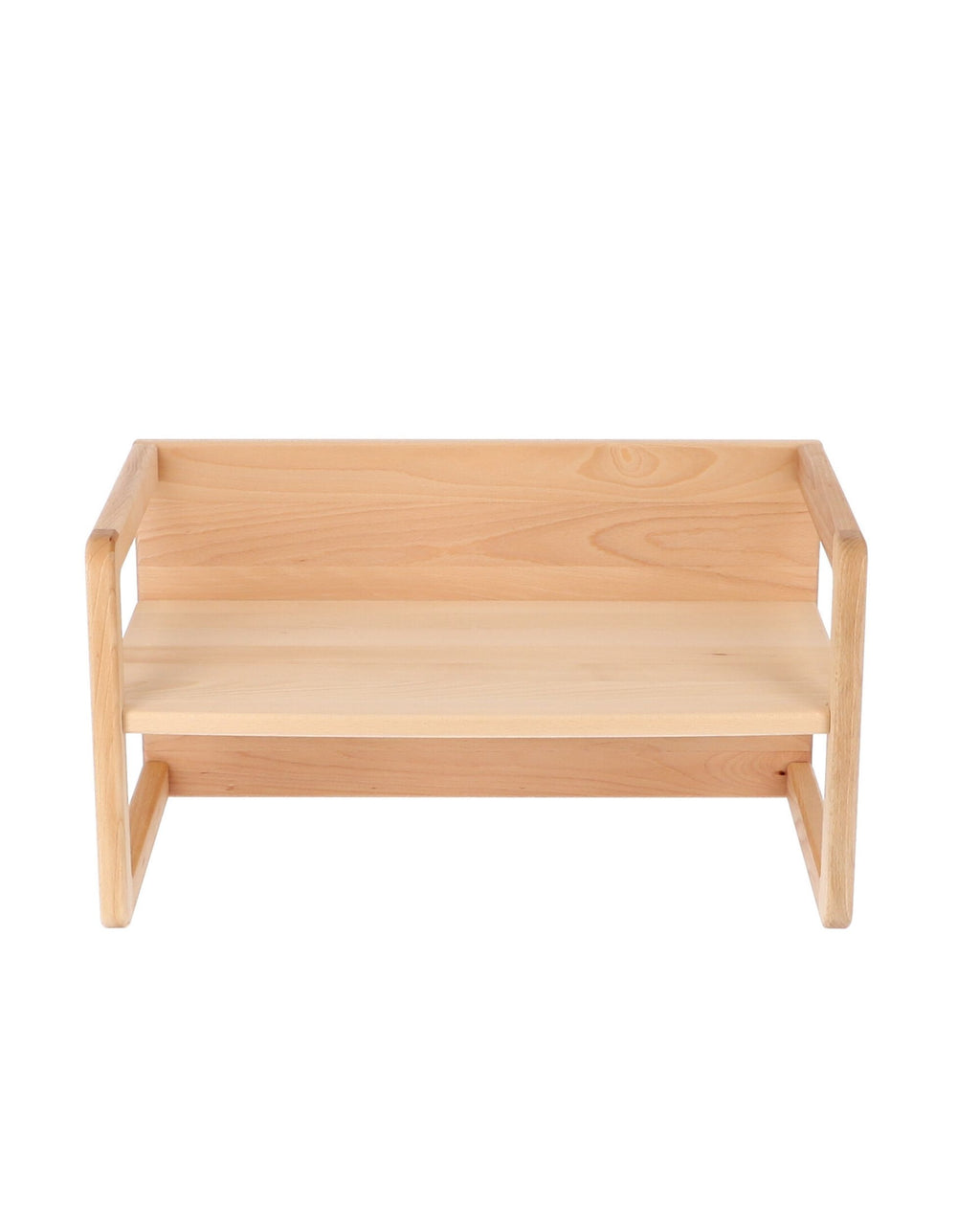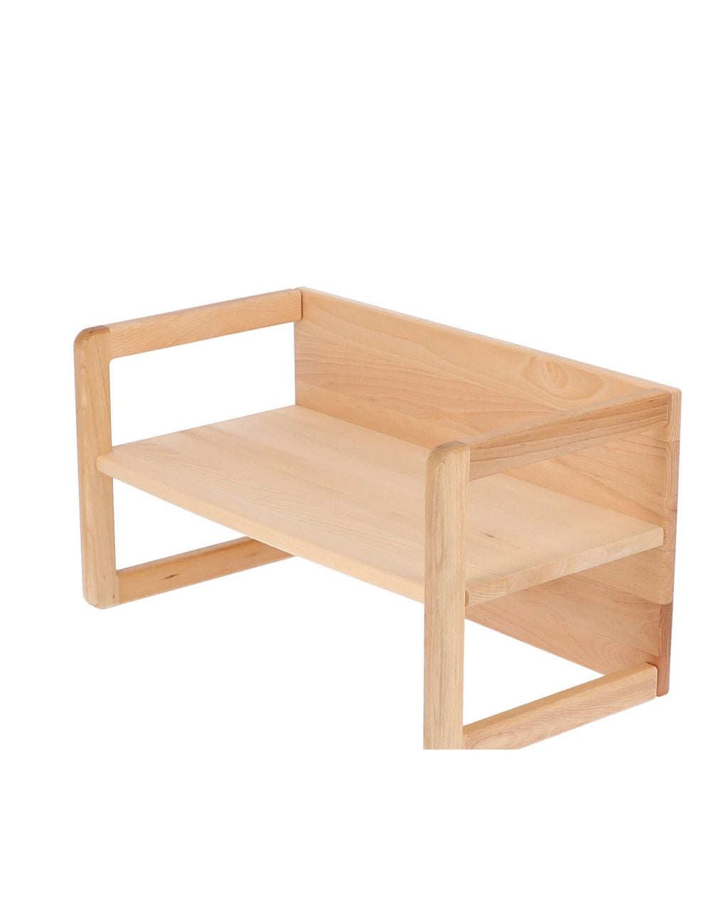 Tim fra Jan Kurtz er et funksjonelt barnemøbel som kan brukes både som barnebenk med to ulike sittehøyder og som barnebord. Enkelt, tidløst og sikkert design med armlener og avrundede hjørner. Produktet er behandlet med organisk voks.